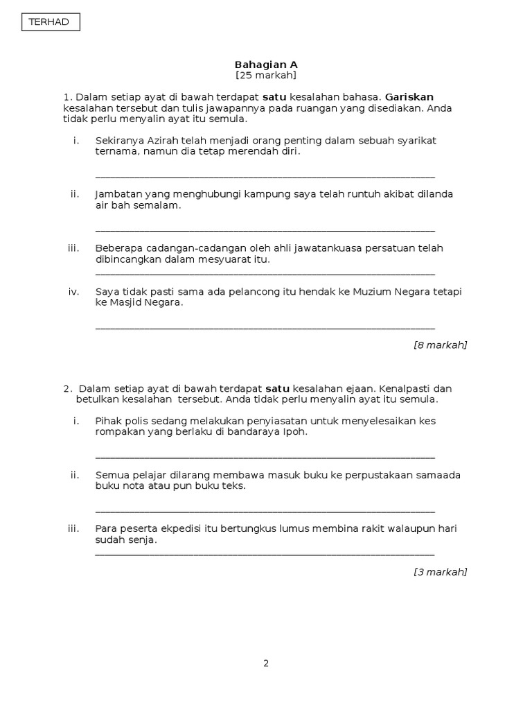 Kesalahan Bahasa Exercise For Tingkatan 1 2 3